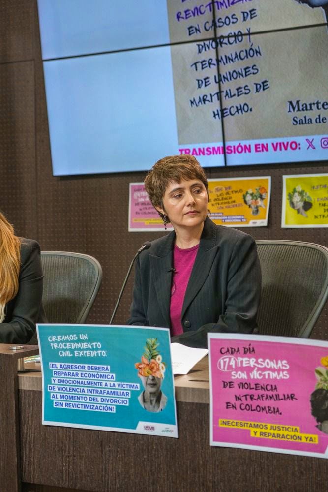Carolina Giraldo, representante a la Cámara por Risaralda, y Catherine Juvinao, por Bogotá, radicaron un proyecto de ley ordinaria para que las víctimas de violencia intrafamiliar sean reparadas de manera integral. El proyecto contempla la reparación económica y simbólica al momento de divorciarse, incluyendo la unión marital de hecho y la cesación de efectos civiles del matrimonio católico. Para ello, instaura plazos específicos para aportar pruebas y fijación de audiencias en el proceso civil, que establece la reparación económica con posibilidad de embargo de bienes, así como de medidas simbólicas que buscan garantizar una reparación integral a las víctimas de este flagelo. Este proyecto surge ante las alarmantes cifras de violencia intrafamiliar que se registraron en 2023: 42.689 casos de violencia de pareja, de los cuales el 86% eran mujeres (36.768 casos). También 63.982 casos de violencia intrafamiliar, de los cuales 42.689 fueron de violencia de pareja (66%).