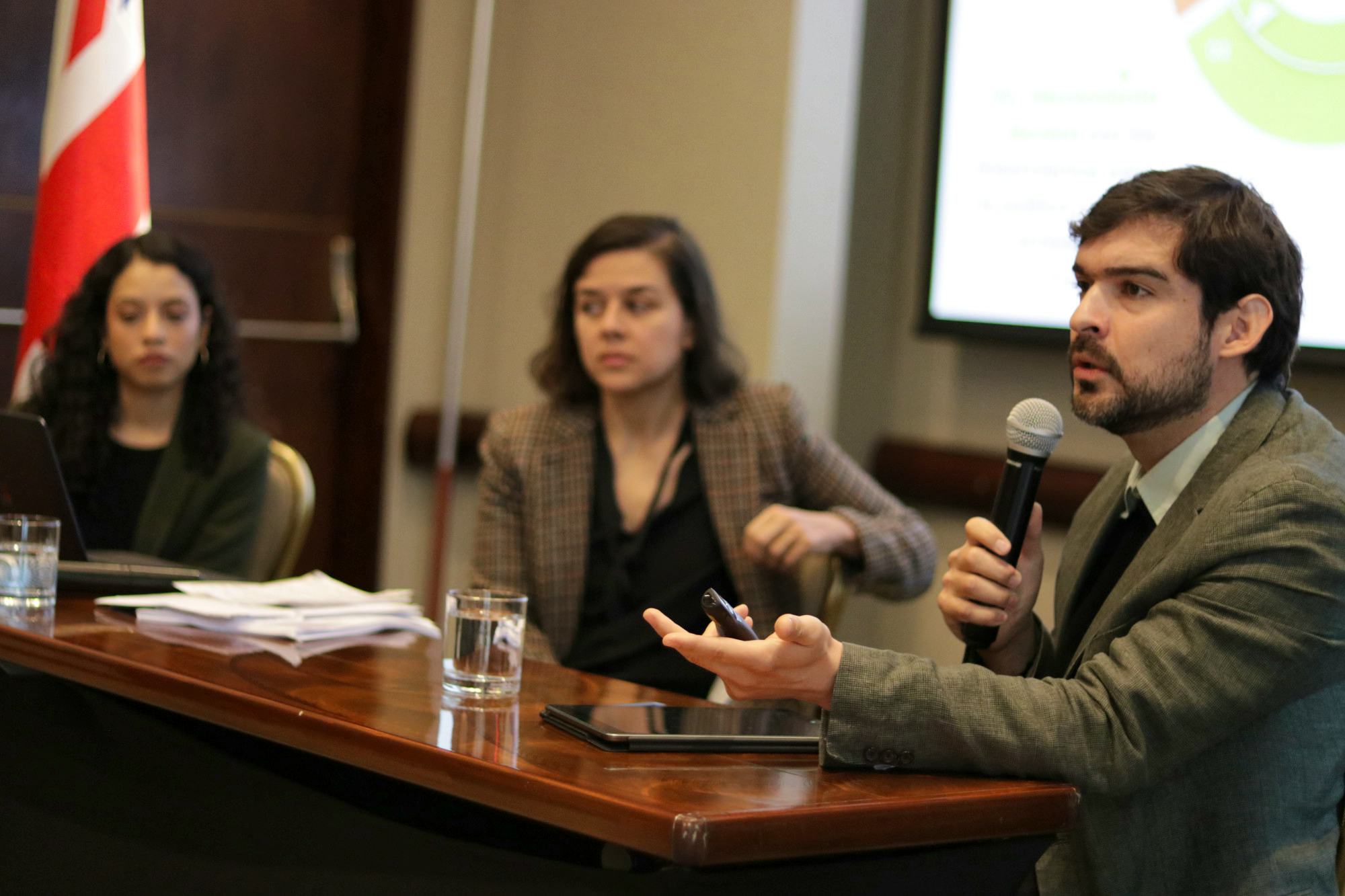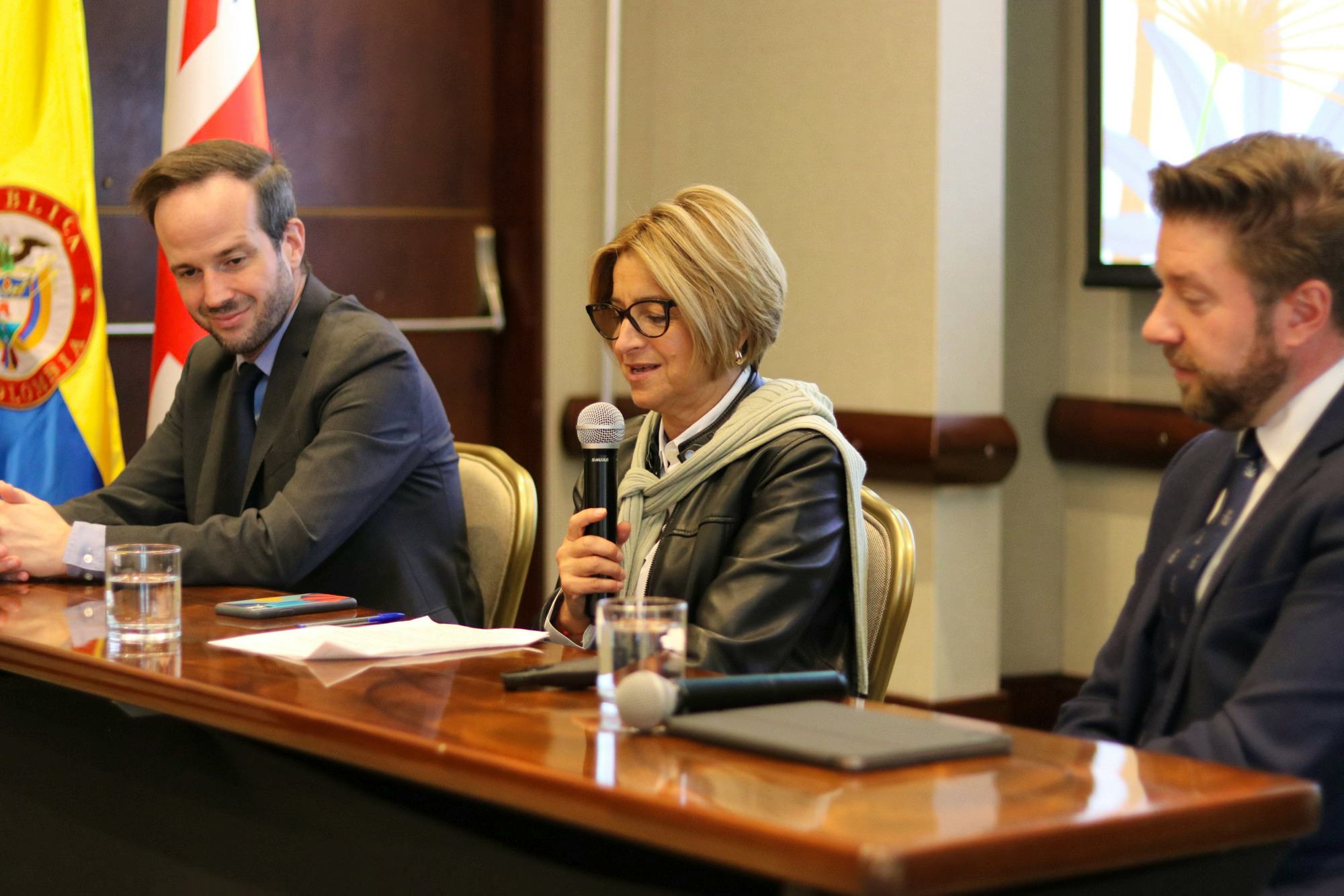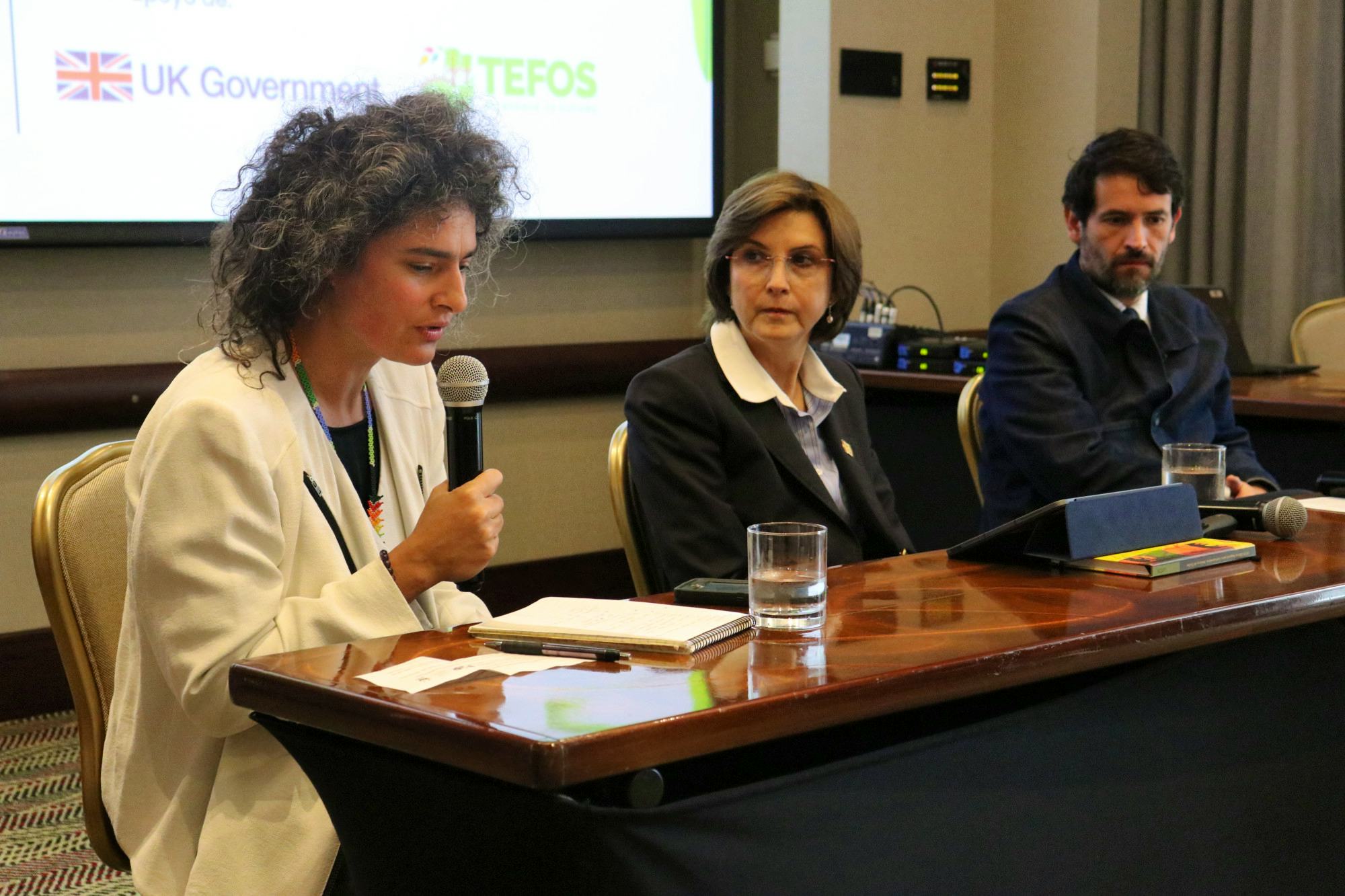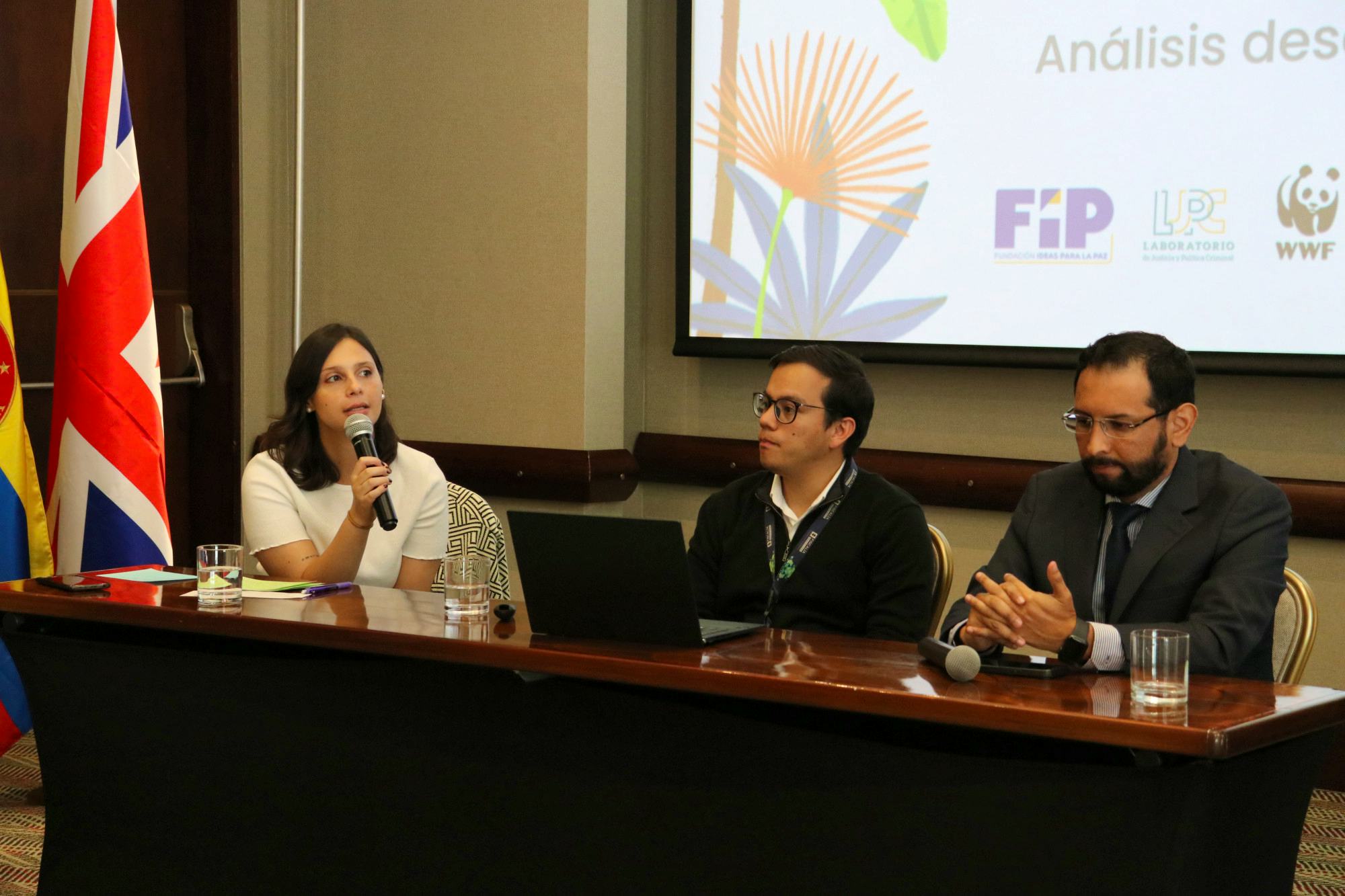 2 / 8 · Olivier Inizan de UNODC, María Victoria Llorente de la FIP y Edward Dunn de la Embajada Británica. -