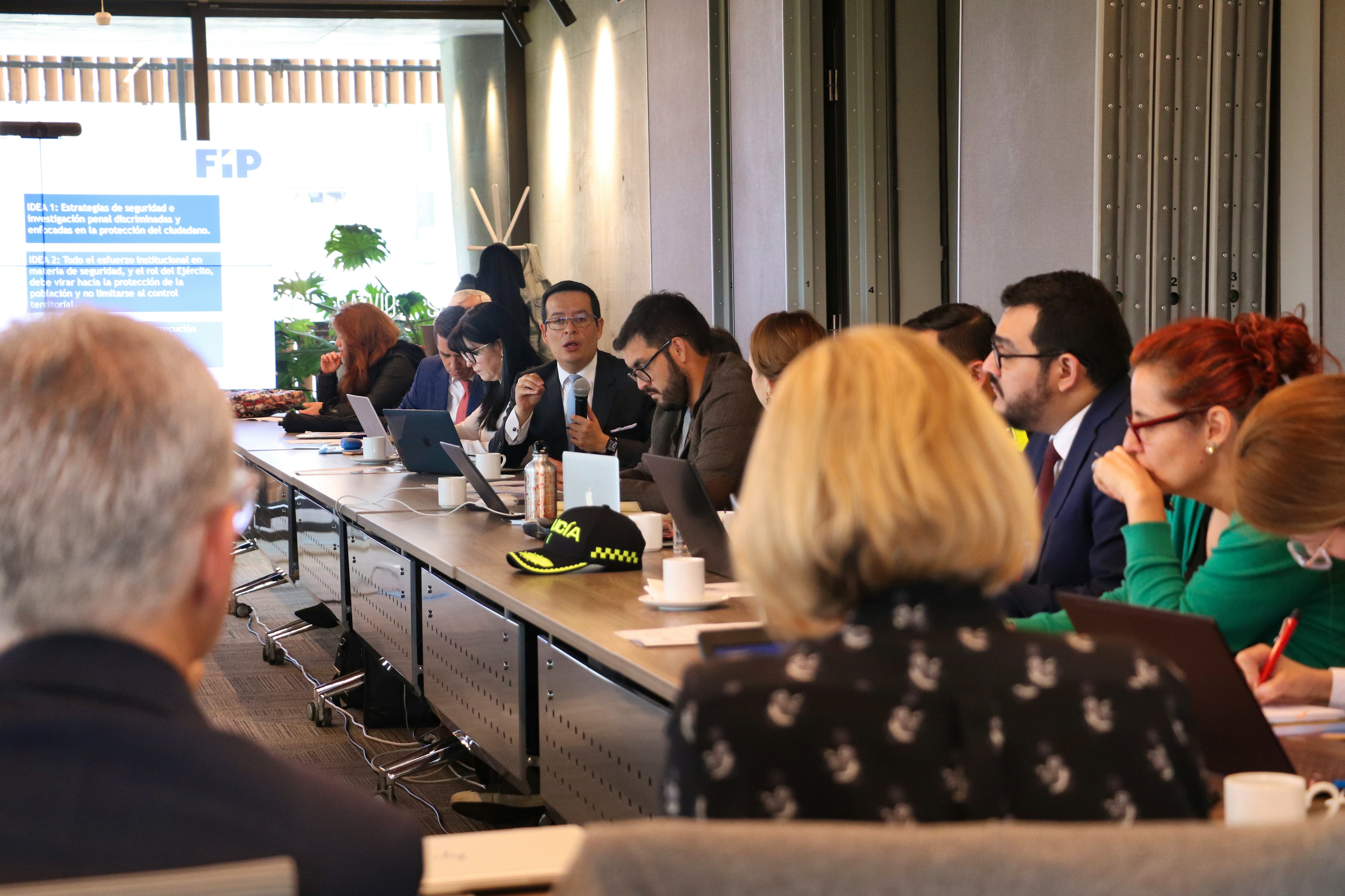 El diálogo de la FIP con representantes del sector Defensa y expertos en seguridad, se centró en cuatro temas que consideramos claves para avanzar en una política de seguridad y convivencia ciudadana eficaz. El primero, es brindar seguridad efectiva y disminuir el delito. El segundo, reducir la violencia y contener a los grupos armados y del crimen organizado. El tercero, fortalecer la gobernanza y eficiencia del Estado en la provisión de seguridad. Y, por último, impulsar una reforma al sector seguridad.