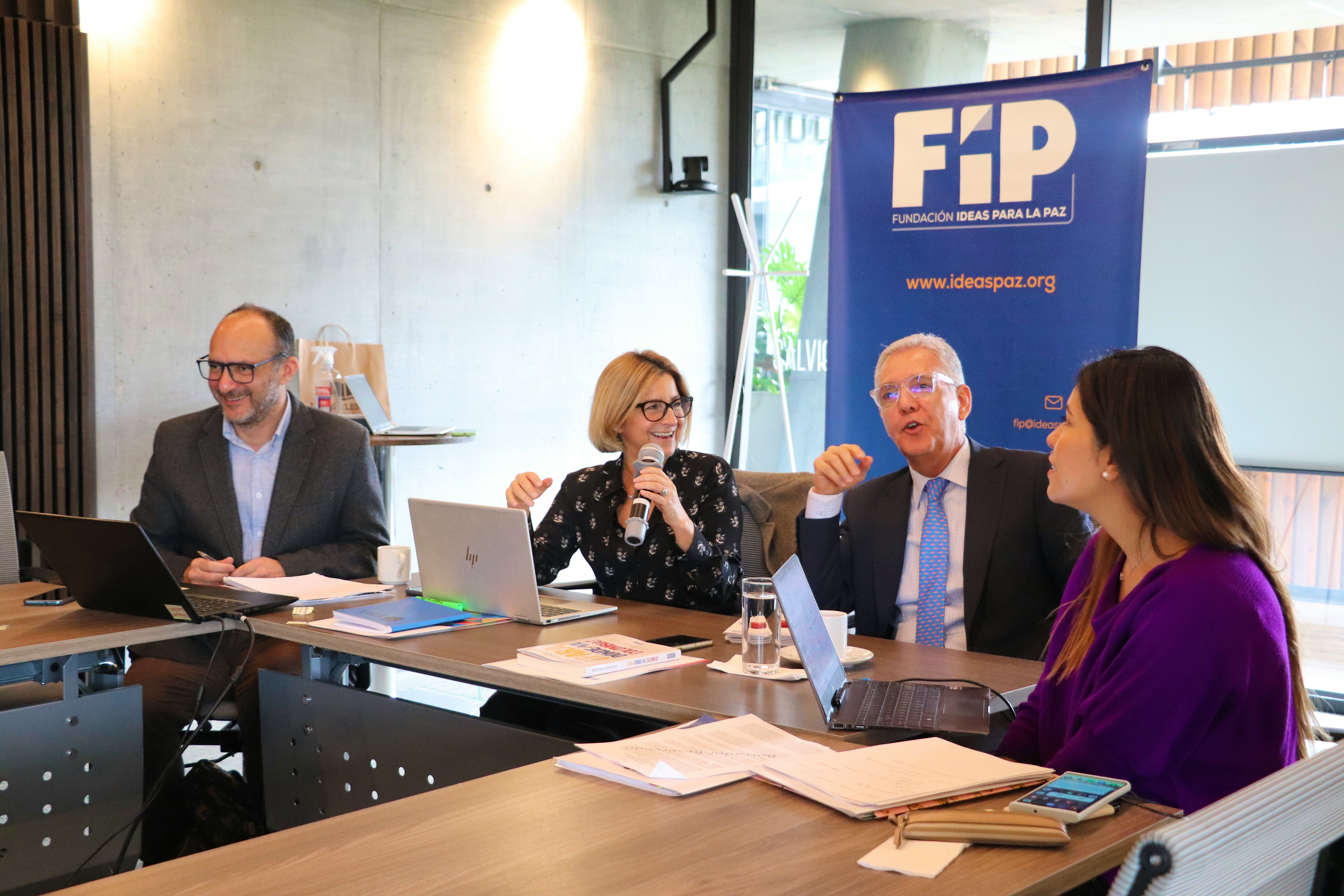 4 / 14 · Izq. Jerónimo Castillo, director de Seguridad y Gobernanza de la FIP; María Victoria Llorente, directora de la FIP; Alberto Lara, viceministro para Políticas de Defensa y Seguridad; Natalia Herrera, asesora del MinDefensa -